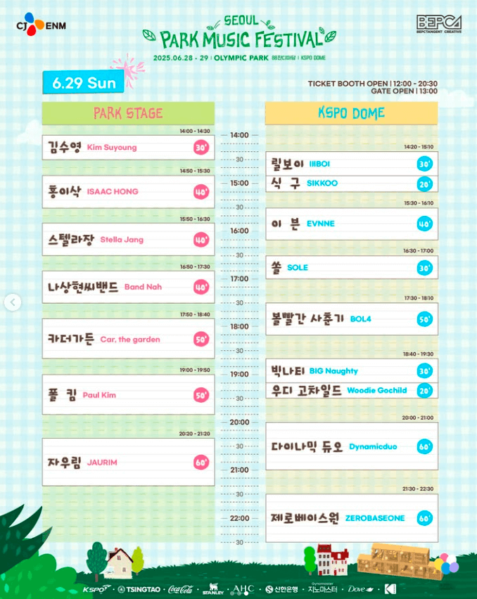 최애 아티스트 언제 나오지? 서울 파크 뮤직 페스티벌 시간표 체크
